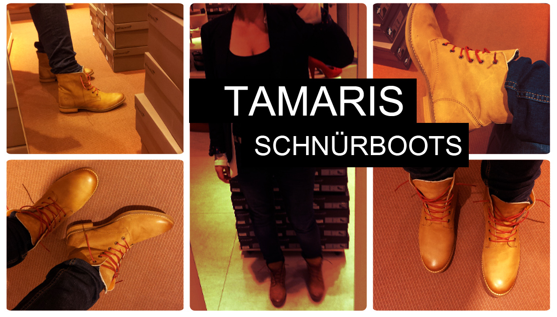 In der Mitte am linken Fuß mein „alter“ Tamarisstiefel. Am rechten Fuß trage ich Tamaris Overknee-Stiefel Modell Phebus, der sich wunderbar trägt, allerdings mit 140 Euro ziemlich weit oben im Tamaris-Preissegment liegt.
