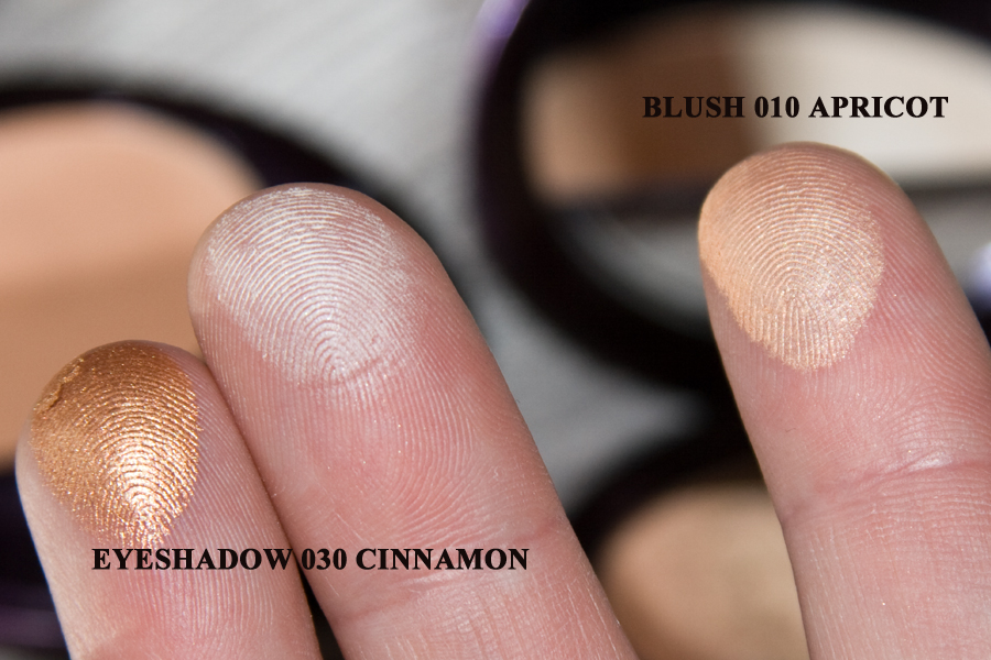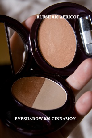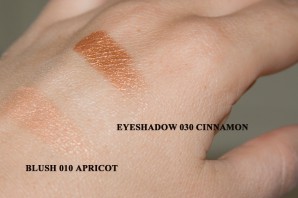 Gestern probierte ich gleich das Lidschattenduo „030 cinnamon“ und den Blush „010 apricot“ aus.