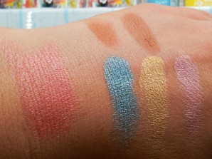 Ich fummelte dann noch ein wenig gelangweilt in den Pötten rum und swatchte die Farben auf meinem linken Handrücken. Sollten euch die Lidschatten, Blush und Bronzer interessieren, also noch ein paar Handyfotos.