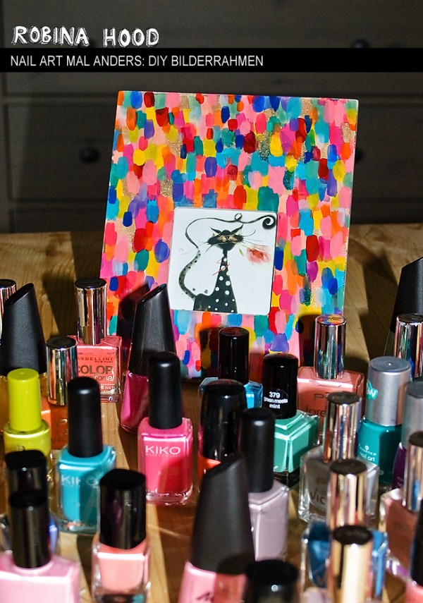 Danach einfach mit einem mit Nagellackentferner getränkten Papiertaschentuch denRahmen entfettet und in der Nagellackkiste gekramt.