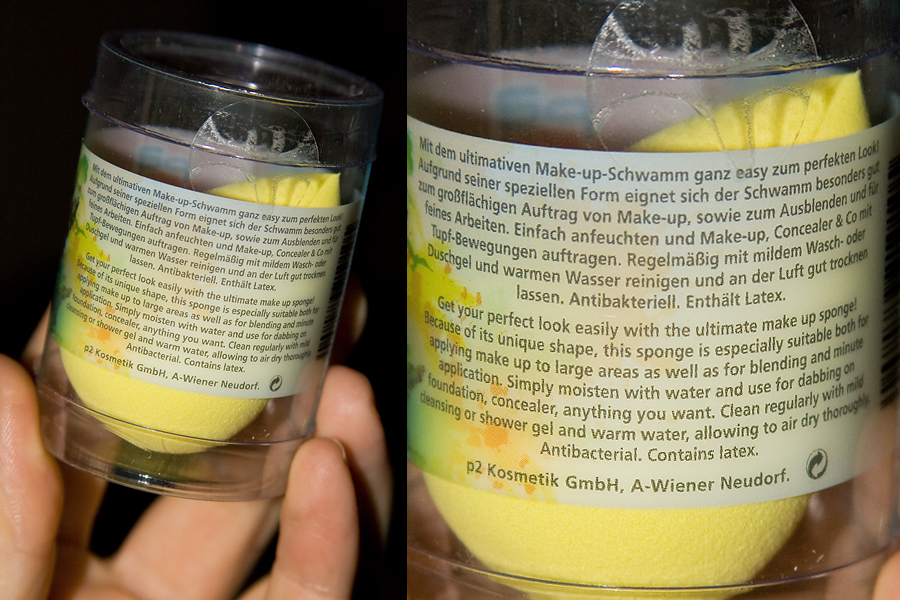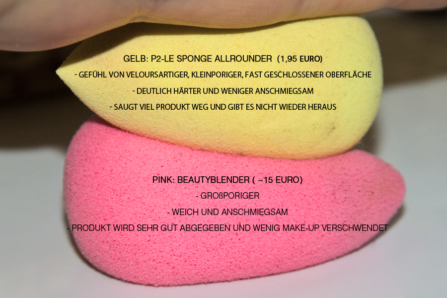So, jetzt zum gelben p2-Eierschwämmchen: Es ist gelb, es hat die Form des berühmten Beautyblenders, es ist kleiner, es ist härter, es ist feinporiger, es frisst Make-up. Tja, noch Fragen? Es konnte einfach in keinem Punkt den Beautyblender schlagen.