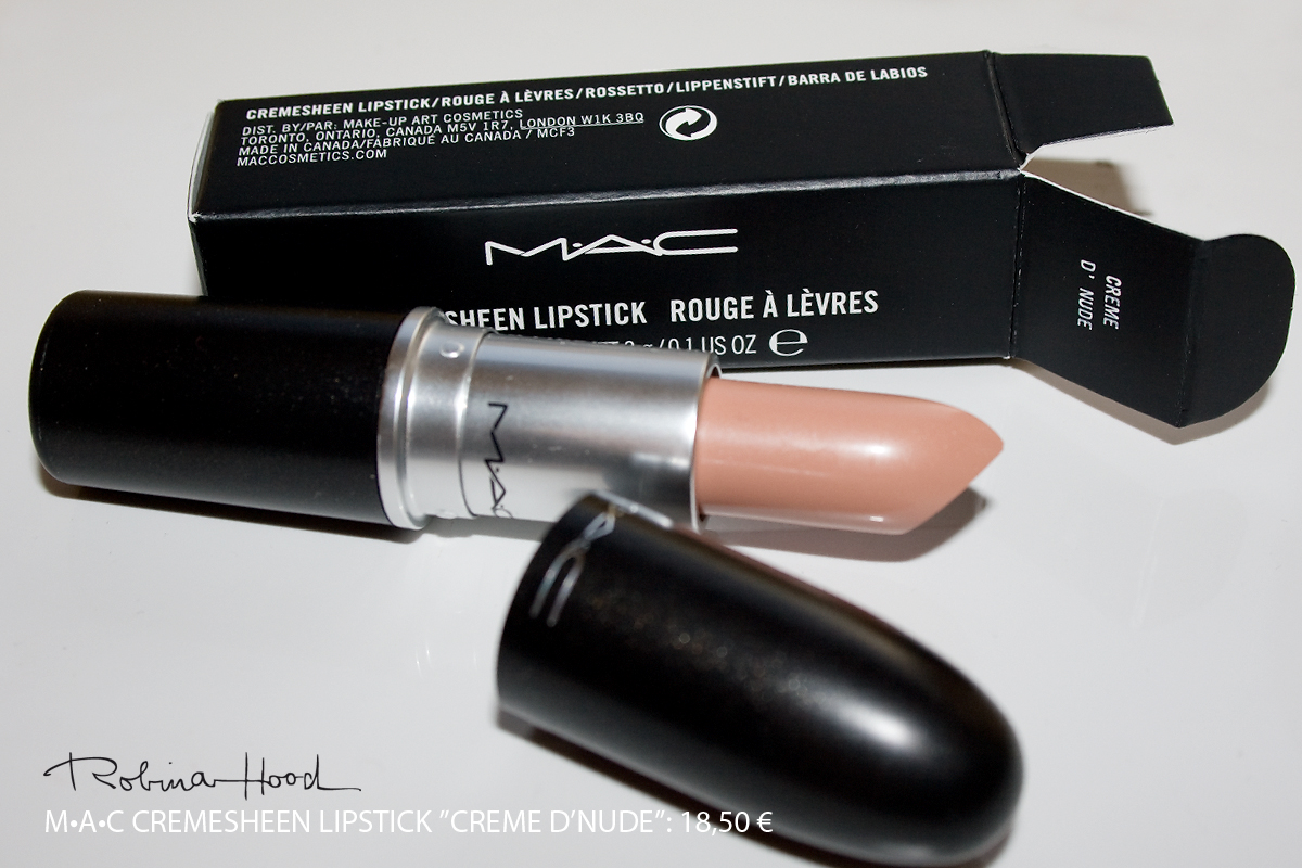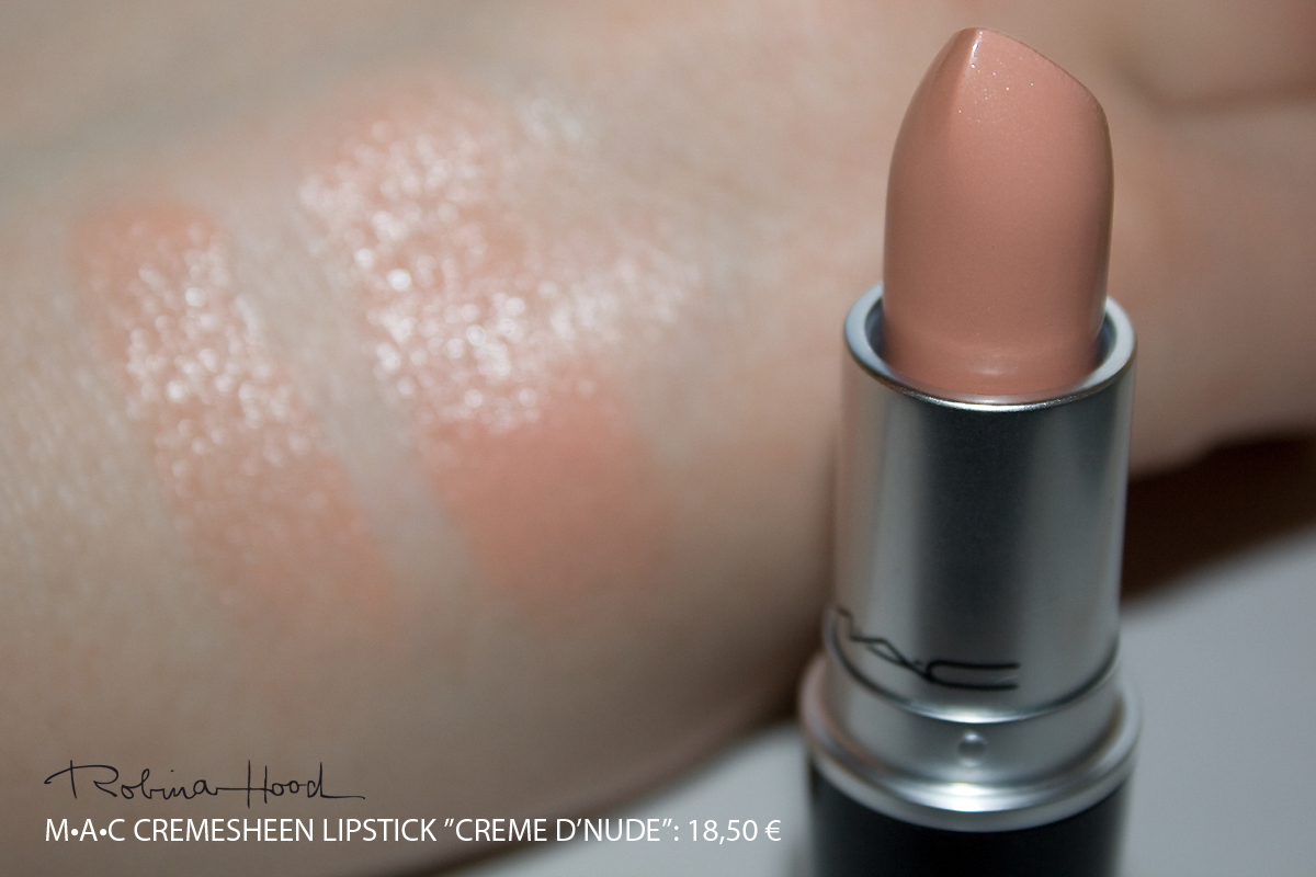 Wer auf der Suche nach einem schicken Nudeton ist und seine Lippen in zartes Beige hüllen möchte, der sollte sich den M•A•C Cremesheen Lipstick „Creme d’Nude“ anschauen. Er ist mein erster „teurer“ Kauf rein nach Swatchfotos gewesen. Ich habe ihn also nicht am M•A•C-Counter ausprobiert, sondern gleich bei Douglas bestellt.