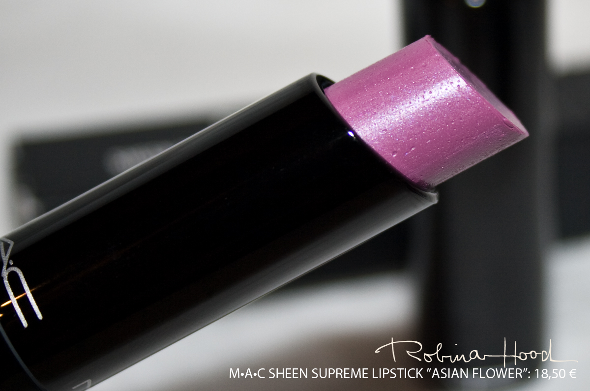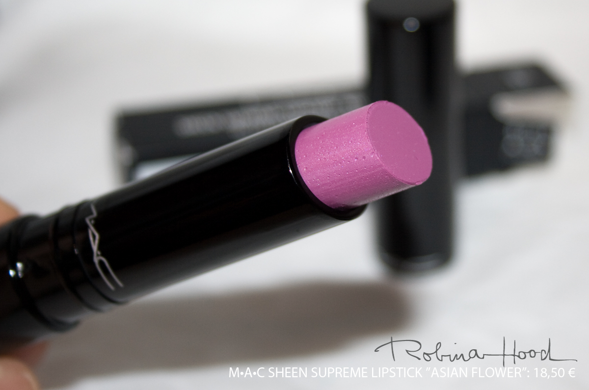 Diesen Dienstag habe ich mir in Dresden drei M•A•C-Produkte gekauft: den Cremesheen Lipstick SPEAK LOUDER, den Lipliner in der Farbe BEET, der übrigens die beste Grundlage dafür ist, um scharfe Konturen zu schaffen und die Zähne weißer wirken zu lassen und den nun folgenden SHEEN SUPREME LIPSTICK in der Farbe ASIAN FLOWER.