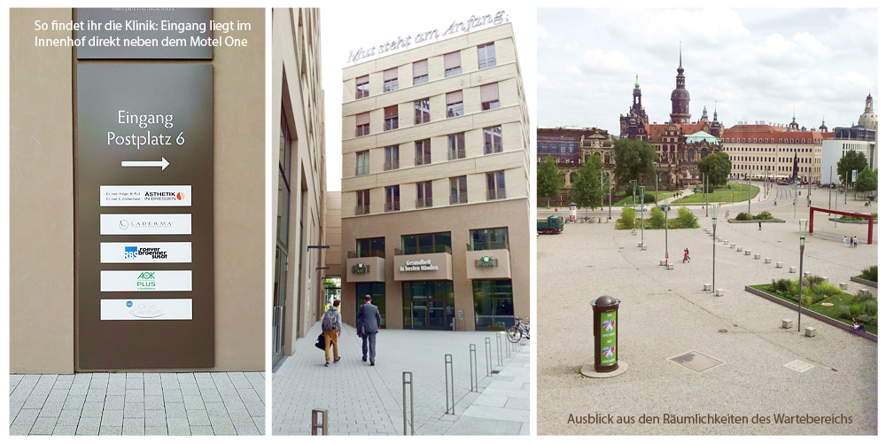 Zum Schluss noch ein paar Fotos zur zur Beautyklinik. Ich habe den Eingang nämlich nicht gleich gefunden. ;) Die Klinik liegt absolut zentral im Stadtkern (sind im letzten Frühjahr dahin umgezogen) direkt am Postplatz 6 neben dem Motel One. Wenn ihr den Eingang sucht: genau zwischen Motel One und dem Nebengebäude durch (siehe Fotos).