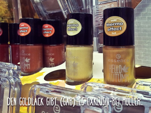 Na, huch! Was gemerkt? Ja, da stand tatsächlich noch einer der ausschließlich und exklusiv nur bei Müller erhältlichen Gold-Thermo-Lacke. Die Farbe 05 „Autumn & The City soll von Grüngold (kalt) zu Gelbgold (warm) wechseln.