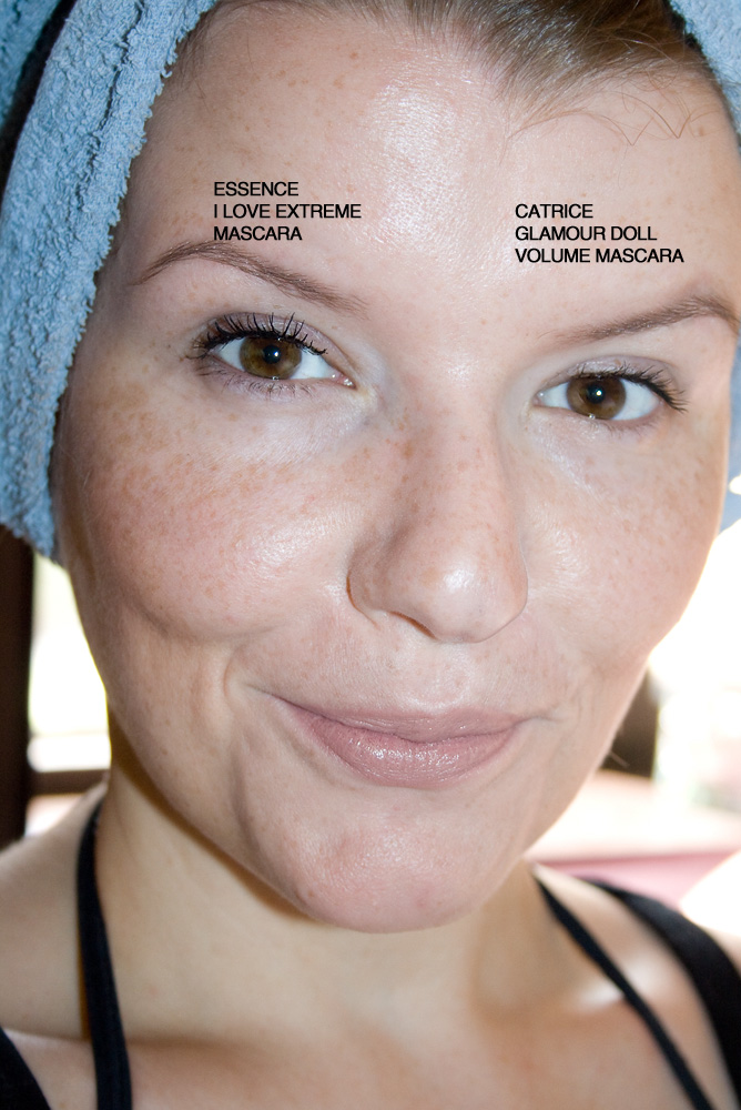Hier also mal die CATRICE Glamour Doll Volume Mascara im Vergleich mit der essence I love Extreme Mascara.