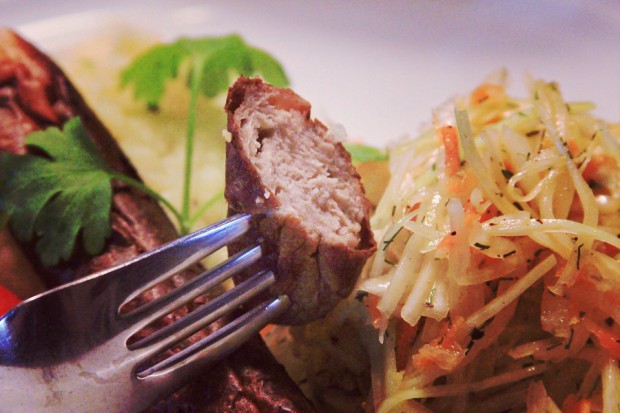 Tja, Papa ;D … darüber haben Mama, Bruder und ich ordentlich lachen müssen, da er wirklich nicht gemerkt hat, dass das kein Fleisch war. Hätte ich die Bratwurst bei niedrigerer Stufe noch krosser angebraten hätte er es womöglich gar nicht gemerkt, denn die Bratwurst schmeckt erstaunlich „wurstig“, nur die Konsistenz lässt erahnen, dass es eine einheitliche Masse ohne Makel ist (was ich persönlich sehr mag), die im Vergleich zur echten Bratwurst vielleicht als zu weich wahrgenommen werden könnte.