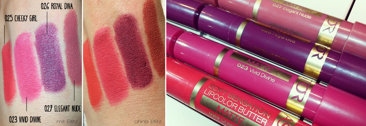 To wear or not to wear. Das ist hier die Frage. Die neuen matten Töne der Sensational Lip Color Butters von Astor sind 6 Töne eingezogen, von denen ich bis jetzt allerdings nur vier in der Drogerie entdecken konnte. Die Nuancen „024 Bubbly Pink“ und „028 Vintage Chic“ fehlen bisher. Vintage Chic scheint mir aber auch zu krass dunkel zu sein, da Elegant Nude bereits recht warm-orange-rot-braun-nude wirkt. Bubbly Pink wäre hier aber wirklich interessant. Ich mag krasse Rosa-, Rot- und Pinktöne im Frühling und Sommer total. Aber auch den Herbst- und Winterblues kann man mit solchen Farben wegzaubern. Ob und inwieweit die Astor-Lip-Butter-Stifte nun Dupes zu den Chubby-Sticks von Clinique sind, kann ich nicht sagen, da mich die Chubbys nie gereizt haben. Aber dazu findet ihr jede Menge Ergebnisse im Web.