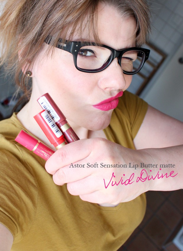 Zur Feier des Tages gibt es einfach mal ein Schmollschnutenfoto mit dem Astor Lip Color Butter matte Stift/Stick/Wasauchimmer „023 Vivid Divine“.