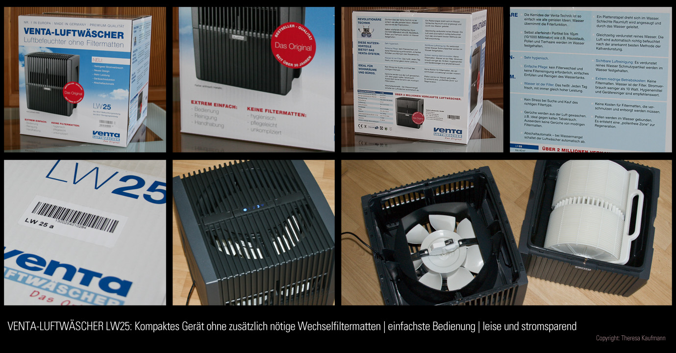 Gerade im Frühling und Sommer leiden Allergiker besonders: Die Luft ist erfüllt von umherflirrenden Pollen und überall schwirren Tierhaare umher, die sich dann überall ablagern. Man kommt mit dem Reinigen gar nicht hinterher und wirbelt im schlimmsten Fall sogar alles auf. Ich konnte den VENTA Luftwäscher LW25 sieben Tage testen und bin bereits jetzt ein wenig angetan. Dieses Gerät sammelt nicht nur in einer sehr erträglich geringen Lautstärke Staub, Pollen etc. im mit Wasser gefüllten Filterbecken, sondern beseitigt gleichzeitig Gerüche, was ich so gar nicht erwartet hatte, bis ich mir die Verpackung genauer ansah und auch lesen konnte, dass der LW25 das können sollte. Da ich in einem Einzimmerappartement wohne und keine Absaughaube in der Küche angebracht ist (habe zwar ein großes Fenster, aber das allein hilft ja nicht, Küchenfrasen komplett zu beseitigen), war es mir ein Vergnügen, festzustellen, dass ich jetzt Luftwäscher, Pollenkiller, Raumbefeuchter und Geruchsfresser in einem habe. ;)