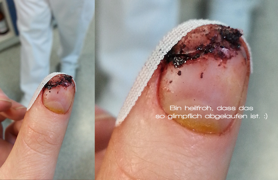 Jetzt mache ich mir sorgen, ob der nagel wieder nachwächst, oder ob da nur ein kleiner nagelstummel bleibt…