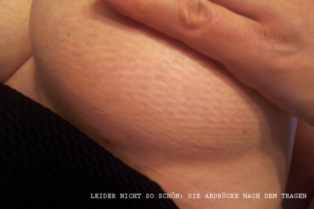 Leider ist das auch wirklich meine letzte Wahl gewesen, da ich eher unter unschönen Dellen an den Schenkeln leide als an erschlafften Brüsten. Um genau zu sein: Meine Brüste sind doch recht schön. Deswegen war ich aber nicht minder gespannt, was denn der BH in Bezug auf meine Brüste erreichen können sollte. Und so sieht er aus: