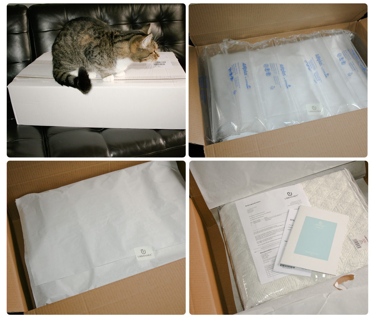 Hier nun meine Bestellung: Sicher verpackt mit Luftpolstern als Buffer und umhüllt von Seidenpapier mit schicken URBANARA-Logosticker.