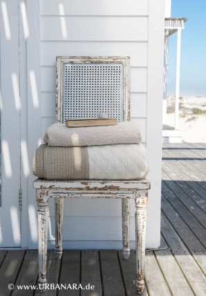 Das Konzept gefällt mir sehr gut, doch musste ich mich erst an die Preise gewöhnen. Man gibt zwar schnell mal 30 oder 35 Euro für eine Tagesdecke (z.B. IKEA, Butlers oder Tchibo …. nur Beispiele! ;)) aus und nimmt in Kauf, dass sie bereits nach einem halben Jahr nicht mehr schön aussieht. Doch, wenn eine Decke 60 Euro kostet, überlegt man schon genau, ob man sie kaufen möchte oder nicht. Eigentlich völlig schwachsinnig, kauft man bei billigen und schlechten Stoffen doch keinen Mehrwert für die Wohnung. :/ Ich habe auch Decken für 140 Euro hier (Patchworkarbeit, die auch wirklich sehr gut und haltbar ist) und konnte mir deshalb schwer vorstellen, dass meine URBANARA-Decke zum Preis von 59 Euro dann der qualitative Oberhammer sein sollte. Ist sie aber! Zwischenhändler und Lagerkosten fallen weg, der Lieferweg umfasst nur den Hersteller und mich als Empfänger. Deswegen ist der Preis wirklich alles andere als hoch und man bekommt beste Qualität.