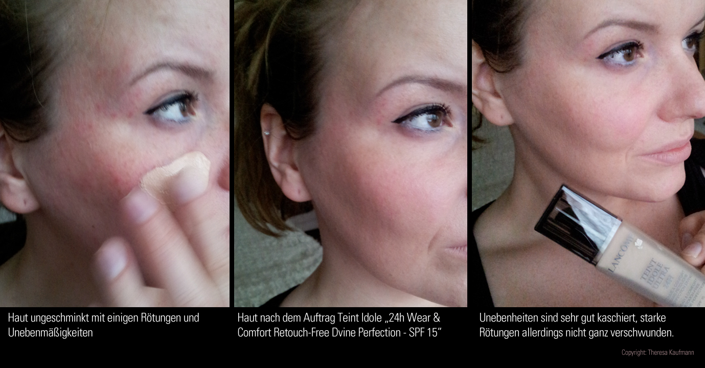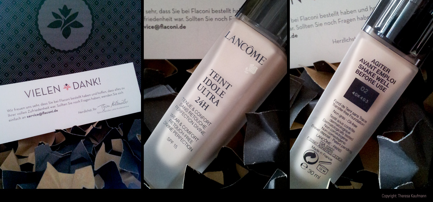 Am schnellsten merkte ich bei M•A•C, dass es so gar nicht mit der Farbe klappen wollte und auch die Eigenschaften veränderten sich; die Foundation dunkelte nach und trocknete so stark auf der Haut, dass diese spannte und meine trockenen Stellen auf den Wangen betont wurde (Pro Longwear Foundation). Chanel war mir zu gelb und pudrig, Shiseido war noch ganz nett, aber irgendwie zu schwer … dann probierte ich noch Teint Visionnaire von Lancôme, Teint Idole, Teint Miracle und Photogénic Lumessence. Alle hatten ihre Vor- und Nachteile, doch Teint Idole stellte sich als Favorit heraus. Außerdem gefielen mir die Inhaltsstoffe am besten.