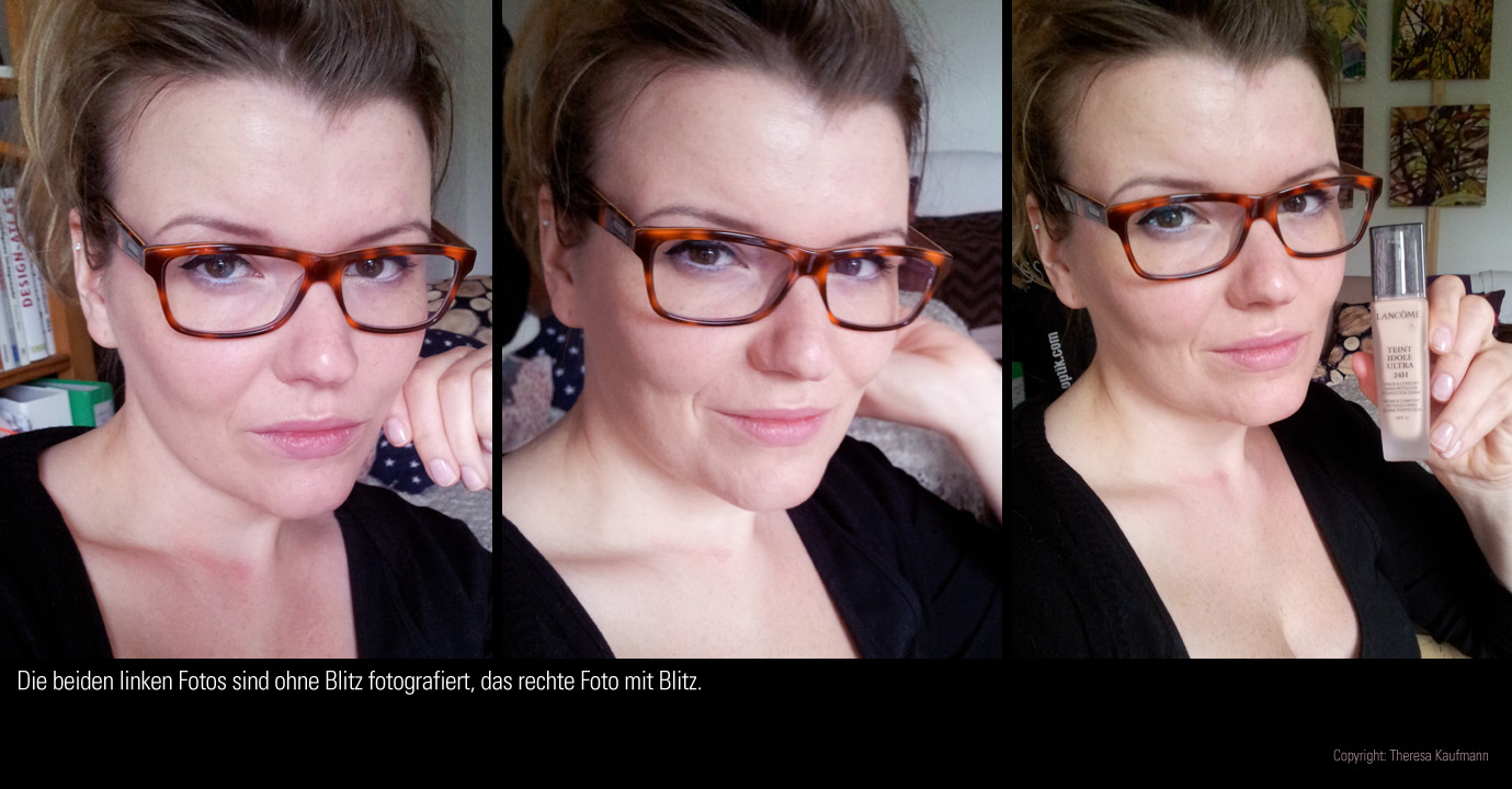 Was ihr übrigens unbedingt machen solltet, bevor ich euch eine Foundation kauft: Macht ein Foto im Halbdunkeln mit Blitz!!! Ich würde am liebsten 20 Ausrufezeichen dahinter packen, weil es echt wichtig ist. Wenn die Foundation zu stark deckt und sich von eurer normalen Hautfarbe unterscheidet, seht ihr richtig beschissen aus, sollte euch jemand auf ner Party knipsen. Ihr kennt vielleicht derartige Make-up-Unfälle von Stars, die plötzlich weiße Augenringe oder helle Partien um den Mund hatten oder eine helle Nase oder das ganze Gesicht komplett hell und der Rest natürlich. Damit das nicht passiert, also unbedingt ausprobieren, gut verblenden und mit eurer Hautfarbe abstimmen. Fein abpudern kann auch helfen.