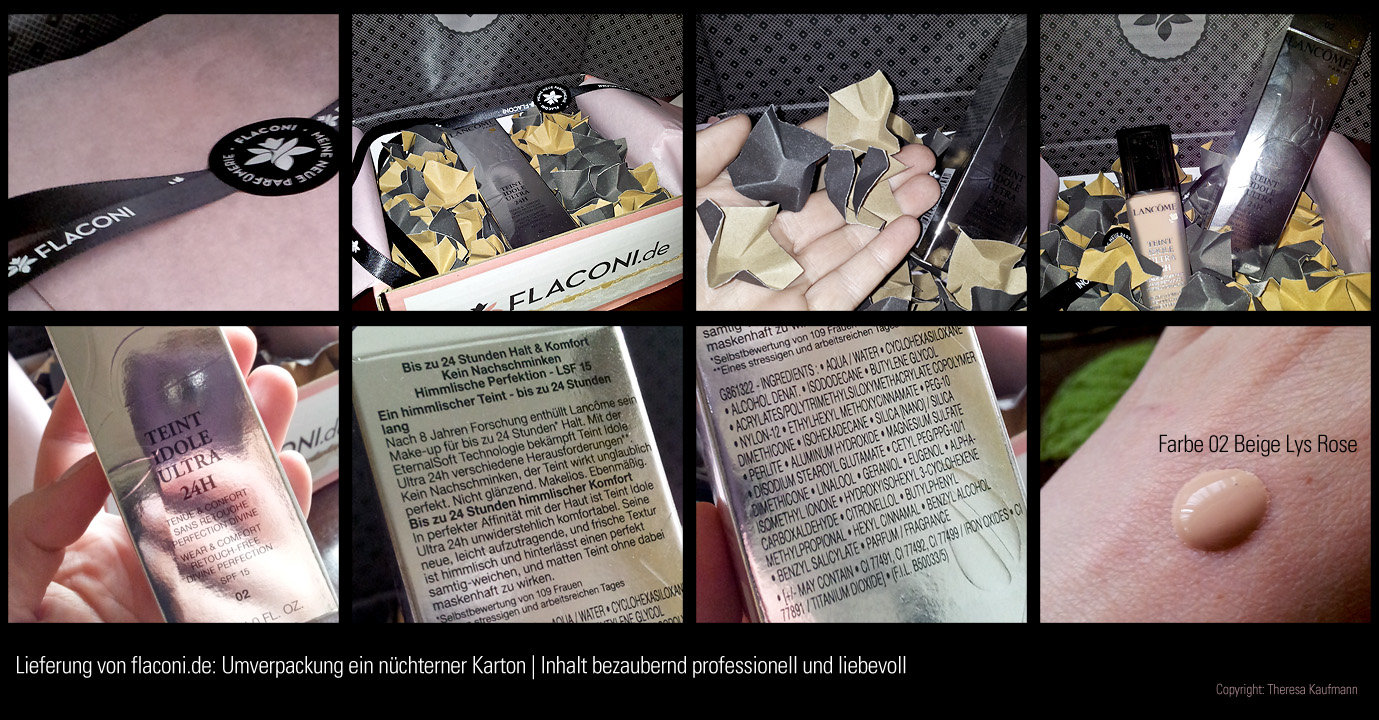 Letztendlich habe ich die Foundation von FLACONI liefern lassen: Recht schicker, aber neutraler Karton, der gleichzeitig die Komplettverpackung aller gelieferten Waren ist. Das finde ich löblich, da es auch Händler gibt, die die Produkte nochmals in einen Karton packen oder andere Umverpackungen. Meiner Meinung nach unnötiger Müll, der nicht nur den Prozess des Auspackens in die Länge zieht und nervig wird, sondern zusätzlich umweltbelastend ist.