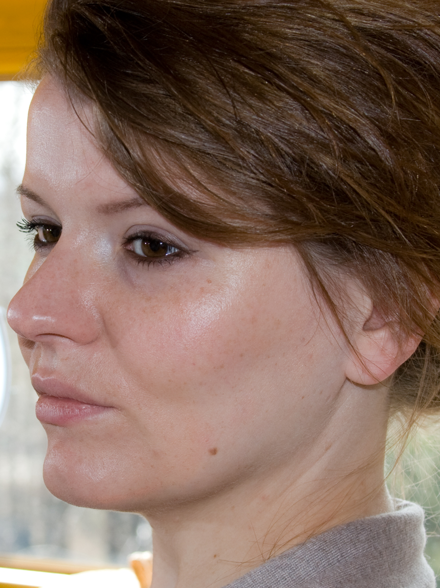 Hier sehr iht meine ungeschminkte Haut. Problematisch bei mir sind immer die leicht ölige T-Zone (Stirn, Nase, Kinn) und die sonst trockenen Wangen. Ich habe also eine typische Mischhaut. Meine Poren auf der Nase sind leicht vergrößert, aber nicht mehr sehr schlimm, denn durch das verwenden von Alepposeife beim Abschminken habe ich dieses Problem recht gut in den Griff bekommen. Die Nase ist nicht mehr so fettig und die Poren wieder verengt, doch durch ewige Quetscherei (MACHT DAS NICHT, LIEBE MÄDELS! Geht lieber zur Kosmetikerin und lasst euch professionell ausreinigen.) ziemlich misshandelt.
