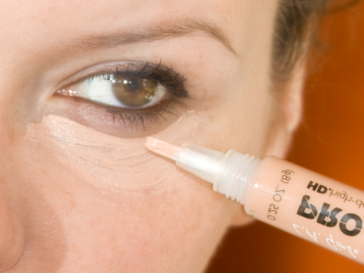 Nachdem man den Concealer mit der Pinselspitze aufgetragen hat, kann man ihn tupfend unter dem Auge verteilen und ein wenig einklopfen. Hier seht ihr übrigens schon die kleinen Schweißperlen über meiner Oberlippe. Echt alles andere als schön; selbst abpudern nimmt dieses unangenehme Gefühl nicht.