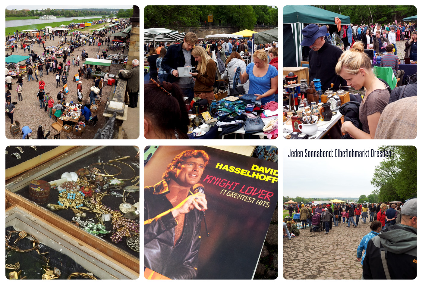 Auf dem Dresdner Elbeflohmarkt (Käthe-Kollwitz-Ufer an der Albertbrücke) findet man wirklich alles: vom Teller bis zum Fahrrad, alles da. Kunst, Trödel, Kitsch, Antikes, Alltägliches usw..