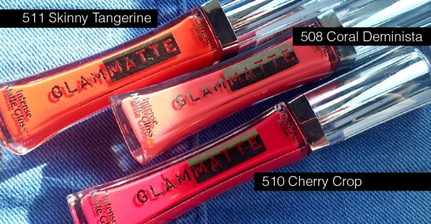kurze Empfehlung, die euch garantiert bombastisch gut stehen wird: Die Glam Matte Glosse von L’Oréal! Gerade für den Sommer wirklich Oberklasse! Drei knallige Farben, die super pigmentiert sind, nicht in die Lippenfältchen kriechen oder verrutschen und sich sehr präzise auftragen lassen.