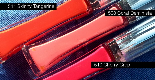 Ich habe mir nach einem Tragetest alle Farben zugelegt. Die Farbe Skinny Tangerine hatte ich einen Nachmittag drauf, nachdem ich die „Glosse“ (wohl eher mattfeuchte Lippencremes) bei dm entdeckt und ausprobiert hatte. Nach dem Essen und ein paar Küsschen hier und da war der matte Cremegloss zwar weg, aber es blieb doch ein recht deutlicher Stain übrig, der ebenfalls attraktiv wirkte.