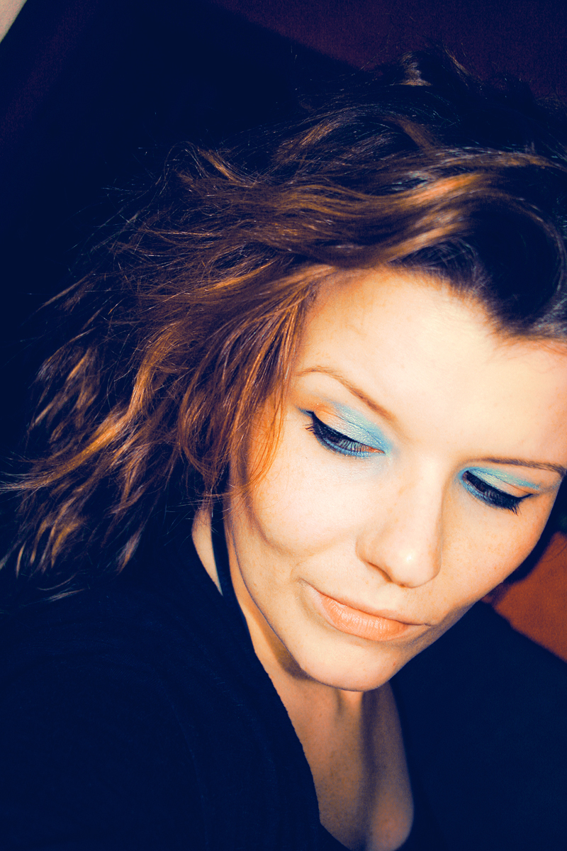 Gestern trug ich den Lidschatten übrigens genau andersrum: in den Augeninnenwinkeln Orange und außen Blau. ;D