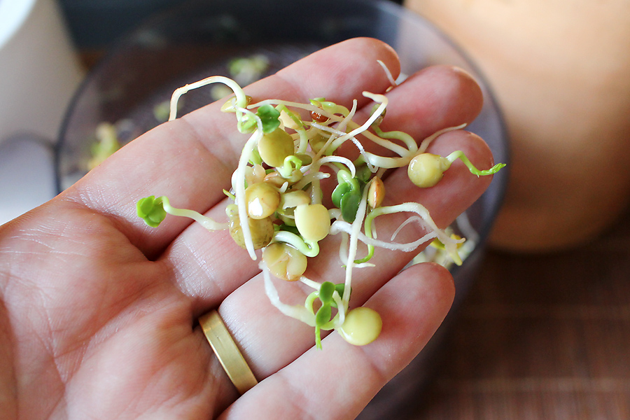 Nach circa drei Tagen sieht das Ganze so aus und ihr könnt die Sprossen essen. Ob in Salate, auf Brötchen oder pur als frischer Snack – Sprossen gehen immer und sind sehr gesund.