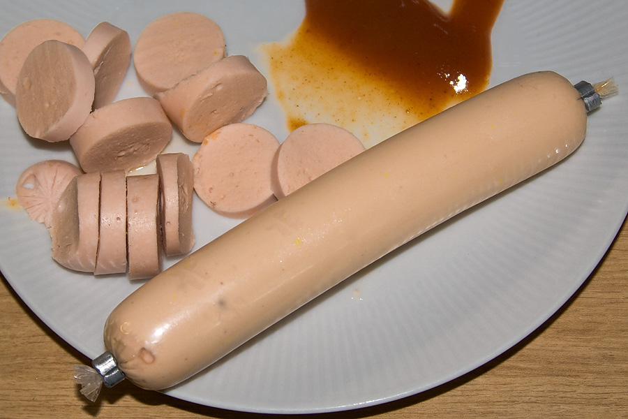 Hilfeeeee! Menschen! Kinder! Vegetarier! Die Wurst ist echt pfui! Schmeckt richtig, richtig fade. Man kann die Sojabasis schmecken und sonst nichts. Da muss ein Notfallplan her!