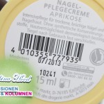 Die Aprikosen-Nagelpflegecrème kann ich derzeit noch nicht einschätzen. Ich hatte sie auch schon aufgetragen, um die spröde Haut am Nagelbett zu nähren und zu pflegen. Für unterwegs ist die Größe von 15 ml wirklich ideal und ich gehe davon aus, dass die Crème sehr lange reichen wird, da sie reichhaltig ist und leicht wachsig nachfettet. Meine Nagelhaut ist aber von Natur aus doch in rechter Ordnung, weshalb ich Euch leider nicht sagen kann, ob sie sehr spröde Haut schnell wieder geschmeidig pflegen kann. Sie fühlt sich aber doch sehr angenehm an und der Duft ist der blanke Wahnsinn! Suchtfaktor 10. Am liebsten würde ich die Crème ausschlecken. Sie duftet wie ein tolles Aprikosenfruchteis und das sehr intensiv. Ich hoffe, Ihr könnt bald alle etwas dazu sagen. Schreibt mir ruhig in den Kommentaren, was Ihr von der Nagelpflege haltet. Die Farbe finde ich auf den ersten Blick gewöhnungsbedürftig, da sie doch extrem karottig ins Auge knallt, was sich beim Auftragen (Ihr seht auf dem Foto gleich, was ich meine.) aber in einen fleischigen Ton verwandelt.
