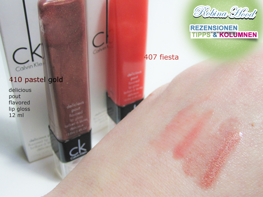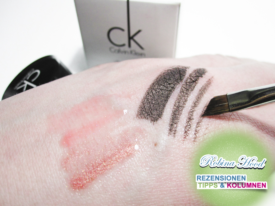 Es war wirklich ein kleiner Schnäppchenraubkatzentraum. Jedes Teil von Calvin Klein war für 3 Euro zu haben. Ich konnte bei dem schokoladenbraunen Gel-Eyeliner nicht Nein sagen, da ich bis jetzt nur zwei Gel-Eyeliner besitze (und zwar von M.A.C in der Farbe Black Track und Rich Ground). Die Textur des Calvin-Klein-Gel-Eyeliners ist fest und beim Auftrag cremig. Man kann mit verschiedenen Pinseln sehr kreativ damit arbeiten. Prezise Formen, feinste Linien oder rauchig ausgeblendete Striche sind kein Problem. Mit der passenden Base (ich bevorzuge die von ARTDECO) hält der Line den ganzen Tag. Dann mussten unbedingt noch zwei Lipglosse mit, die auf den Lippen guten Halt finden, aber ein wenig kleben. Das ist wohl auch ein Grund, weshalb Männer, die von Lipglossmündern geküsst werden, oft mal nachschmatzen und ihre Lippen aufeinander reiben. Muss sich wohl befremdlich für das männliche Erdenvolk anfühlen. ;-)
