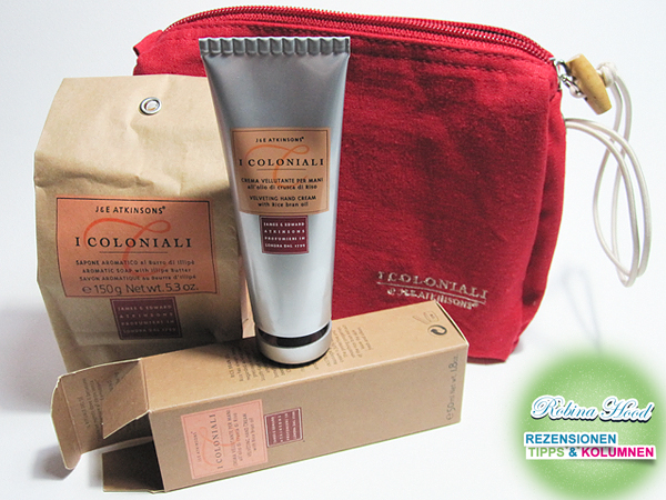 Dann hat es noch ein kleines Set von I COLONIALI in meinen Besitz geschafft. Eigentlich handelt es sich um Beauty-und Pflegeprodukte für den Mann. Der Duft war aber so angenehm, dass ich nicht widerstehen konnte. Ein Täschchen aus rotem Leinen, eine pflegende Handcreme, die sehr samtig und anfangs fettend ist und eine äusserst würzige Seife, die jetzt meinem Vater gehört, der sonst für solche Düfte wie Tabac oder ähnlich Würziges zu begeistern ist und nun das ganze Bad beduftet. 7,45 € statt knapp 15 Euro. Da musste ich zuschlagen. ;D Die Handcrème möchte ich auf keinen Fall mehr missen, wobei ich nicht weiß, ob ich nicht doch mal eine Crème von L’Occitane ausprobieren werde (schwärmen ja unglaublich viele davon), sollte meine zur Neige gehen. ;-)