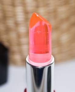 Die Konsistenz: im Stift fest (man kann den Stift nicht so schnel beschädigen durch Anditschen) und auf den Lippen schmelzend. Stift nutzt sich nicht schnell ab, was mir gefällt. Meine Lippen trocknen nicht aus, aber die feuchte Formulierung verschwindet doch nach einigen Minuten, was mir nun wieder zu schnell geht.