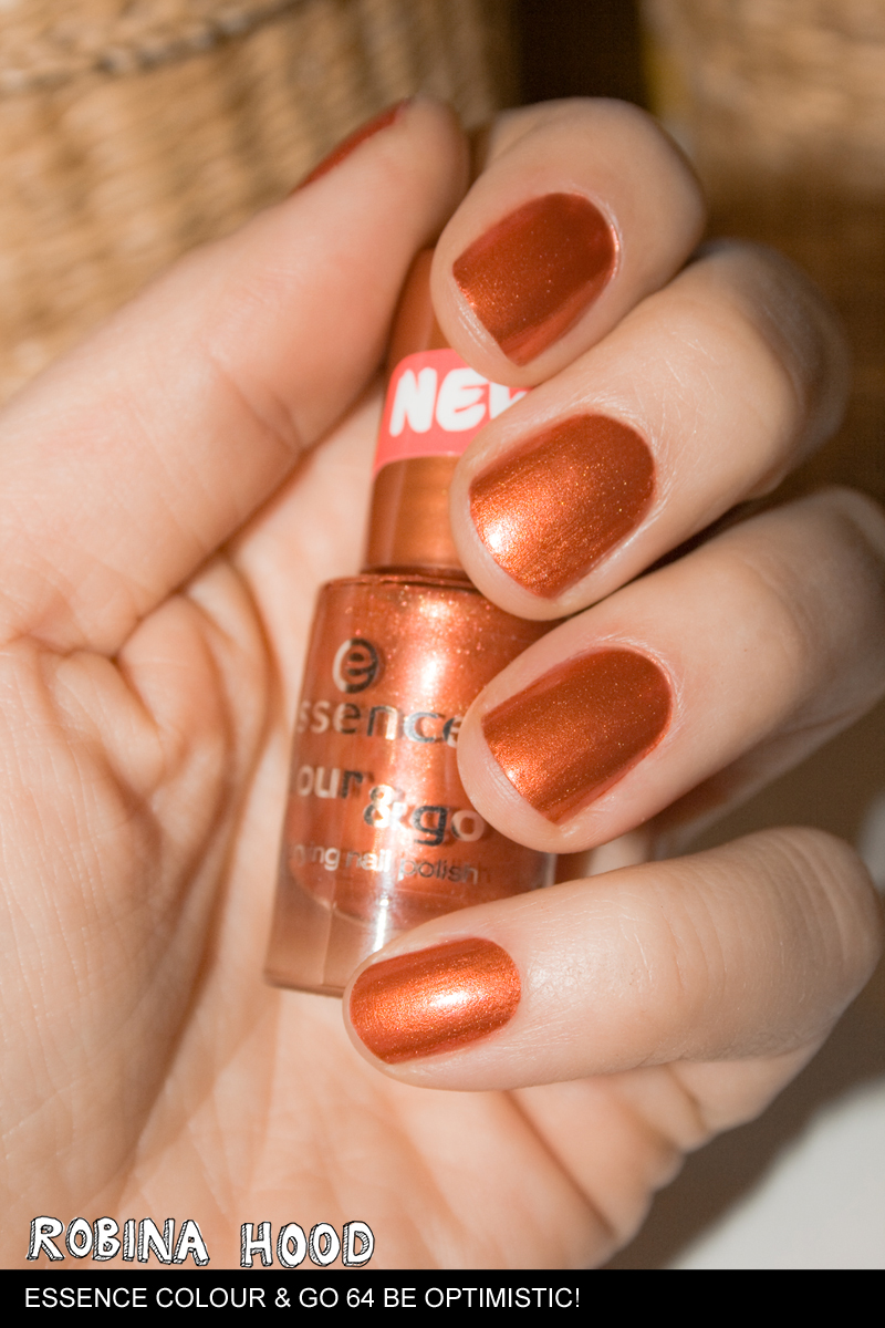 Tante Robina hat mal wieder ablackiert und neu aufgetragen. Die neue Farbe „64 be optimistic!“ der essence colour & go-Lacke durfte auf meine zehn Fingernägel. Essence bekommt ihr beispielsweise bei dm oder Rossmann, aber auch im Kaufland habe ich schon essence-Displays gesehen.
