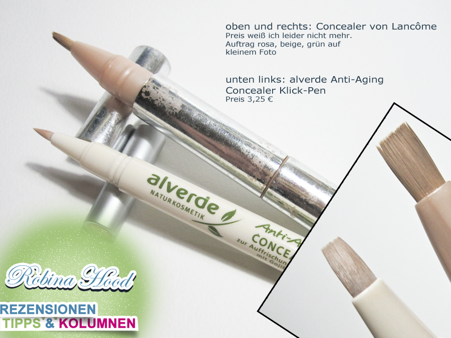 Von dem Klick-Concealer hab ich auch noch nix gutes gehört, soll auch recht wenig drin sein und damit ja teuer. Vielleicht ist der Puder-Concealer ja was. Pudrige Formen kann Alverde ja besser als cremige (siehe z.B. Lidschatten Base in der Tube vs. der neuen Puderform).