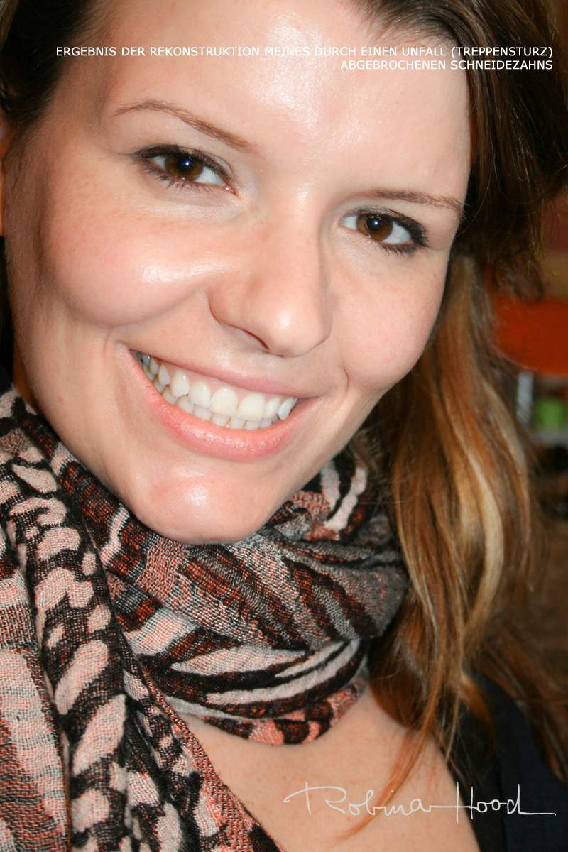 Ich bin auf jeden Fall sehr zufrieden mit dem Ergebnis. Diese ewige Andersfarbigkeit des linken Schneidezahns hat mich extrem gestört. Außerdem hatte der Zahn keine Schneidefläche bzw. keine richtige Kante und war mindestens doppelt so dick wie mein rechter Schneidezahn. Jetzt fühlt es sich irgendwie „richtig“ an. ;D