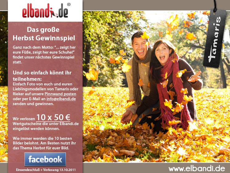 Einfach bis zum 13. Oktober 2011 das Foto von euren Lieblings-Tamarisstiefeln/-schuhen oder Lieblings-Riekerstiefeln/-schuhen an die Pinnwand von elbandi.de posten und hoffen, einen der 10 Gutscheine zu ergattern, die ihr dann im Online-Shop von Elbandi.de einlösen könnt. Ihr könnt aber auch eine Mail an elbandi.de schicken. Steht auch noch mal in den Teilnahmebedingungen.