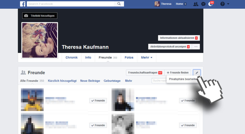 Um seine Privatsphäre auf Facebook und die Freundesliste vor ungewollten Blicken zu schützen, hat man die Möglichkeit, die Liste zu verbergen. So werden die Freunde für andere unsichtbar und man macht es neugierigen Profilbesuchern ein wenig schwerer.